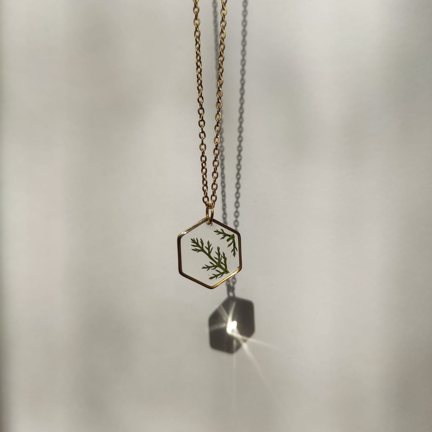 Pozostały materiał: żywica jubilerska, naturalne kwiaty: liść krwawnika